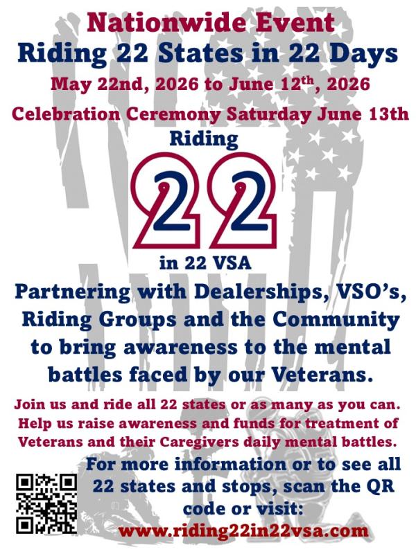 Riding 22 in 22 Veteran Suicide Awareness Benefit Ride