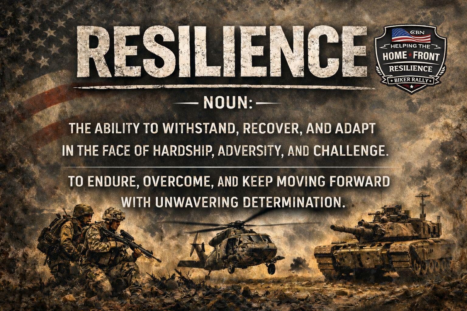 HelpingTheHomeFrontThe theme for our rally and for our program is "RESILIENCE"! We never fail to be impressed by the dedication, determination and perseverance of those who have answered the call defend our great nation. We are committed to standing behind our... moreThe theme for our rally and for our program is "RESILIENCE"! We never fail to be impressed by the dedication, determination and perseverance of those who have answered the call defend our great nation. We are committed to standing behind our active-duty service members and their families in their times of great financial need. Make plans to join us for the 2026 Helping the Home Front "RESILIENCE" Biker Rally, Saturday, September 26 on the grounds of the Christian Broadcasting Network in Virginia Beach, VA.