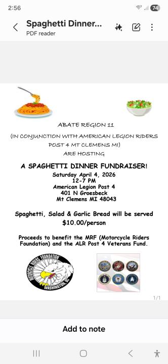 MRF/Veterans Spaghetti Dinner